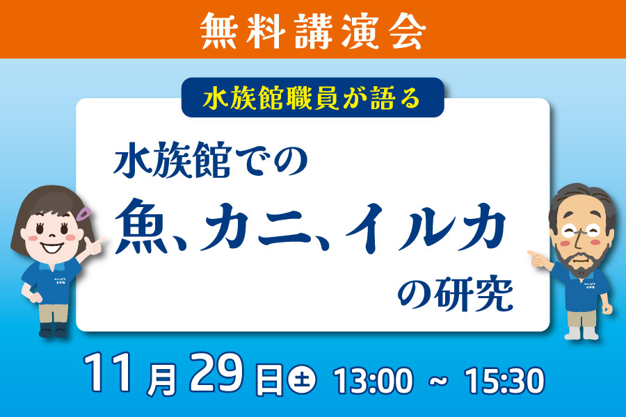 水族館職員が行っている水生生物に関する研究の目的や内容、何に役立ったかなど研究している職員自らがお伝えします。