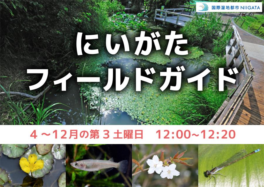 にいがたフィールドの四季を感じてみませんか? スタッフが案内しながら、にいがたフィールドの環境や生物を紹介します。 実施日:4~12月の第3土曜日 時 間:12:00~12:20 約20分間 参加費:なし 参加方法:参加ご希望の方は、当日12:00までに「にいがたフィールド四阿(あずまや)」にお集まりください。 ※悪天候等、状況により実施しない場合があります。 ※観察できる生物は季節によって異なります。 シナイモツゴ ドジョウ、キタノメダカ アサザ