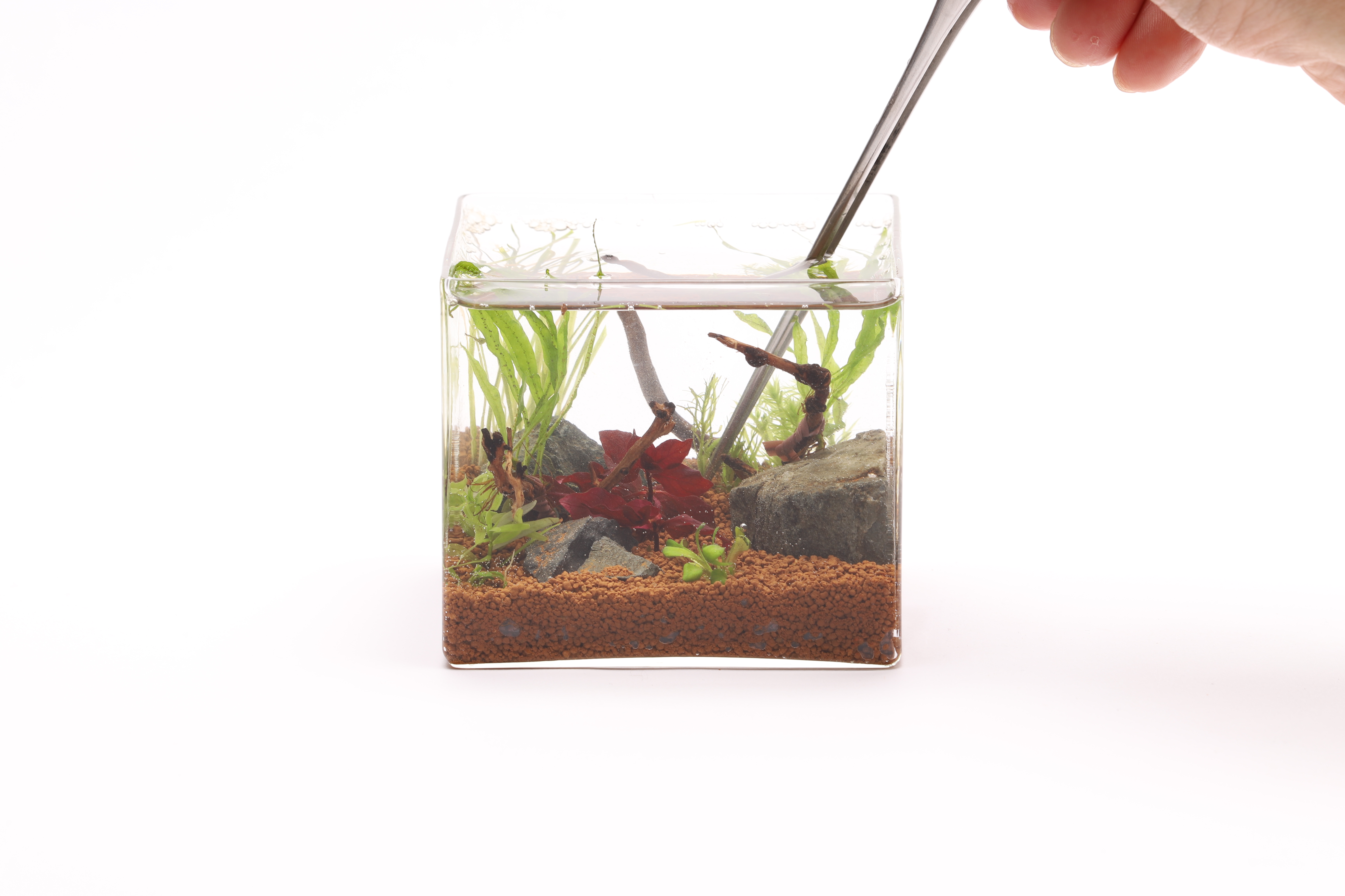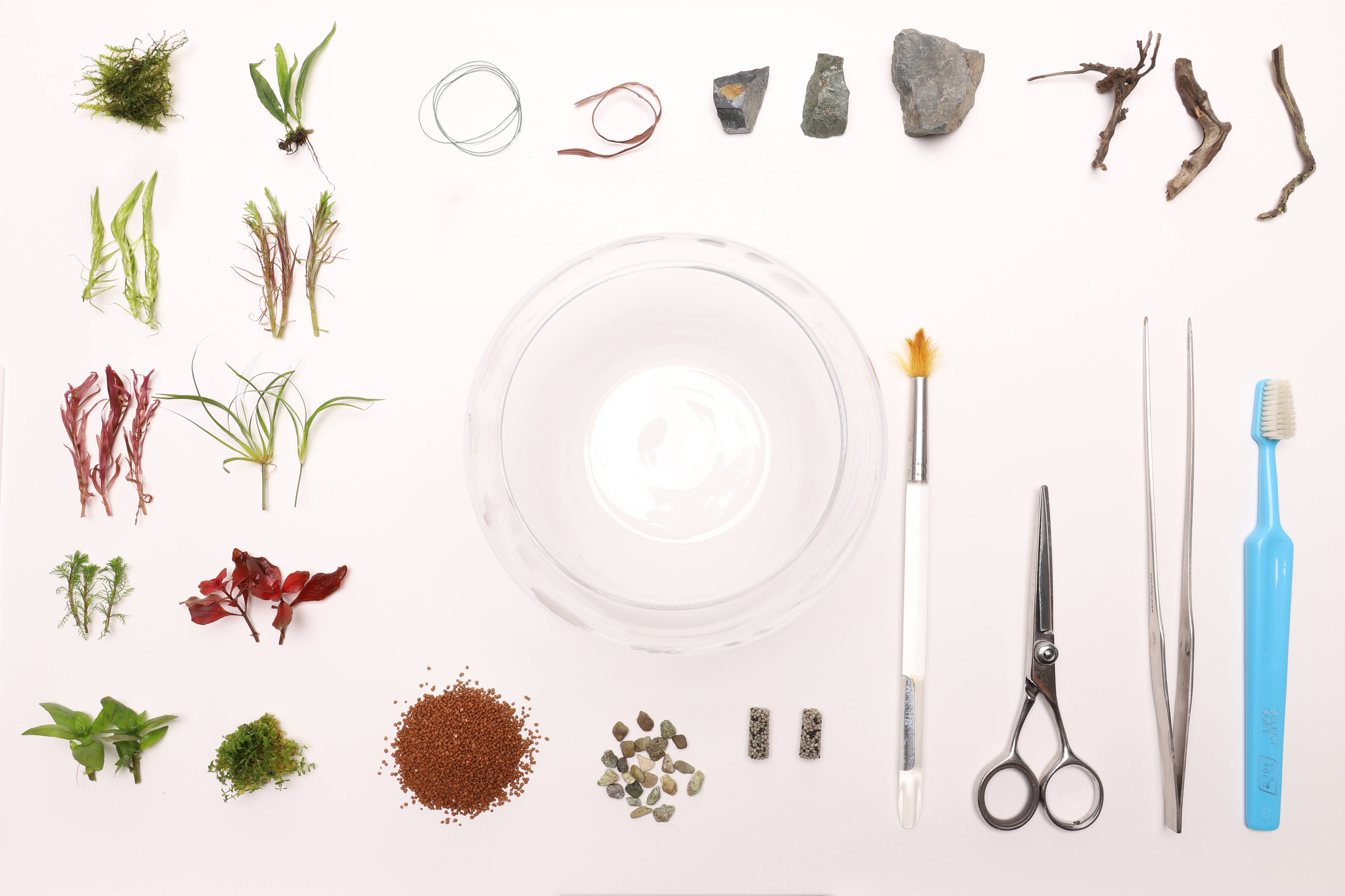 今回は、石や流木などを配置し水草を育てます。