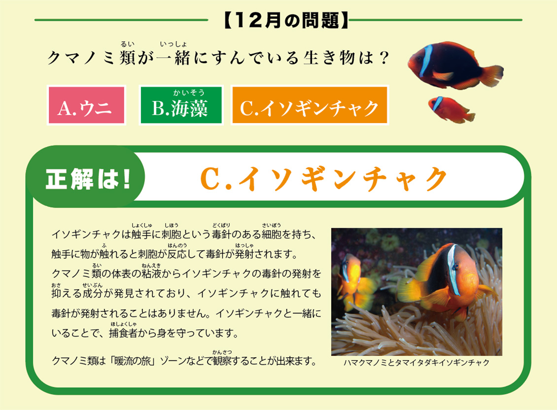 2025.12「クマノミ類の住みか篇」 問題(Youtube) 答えと解説