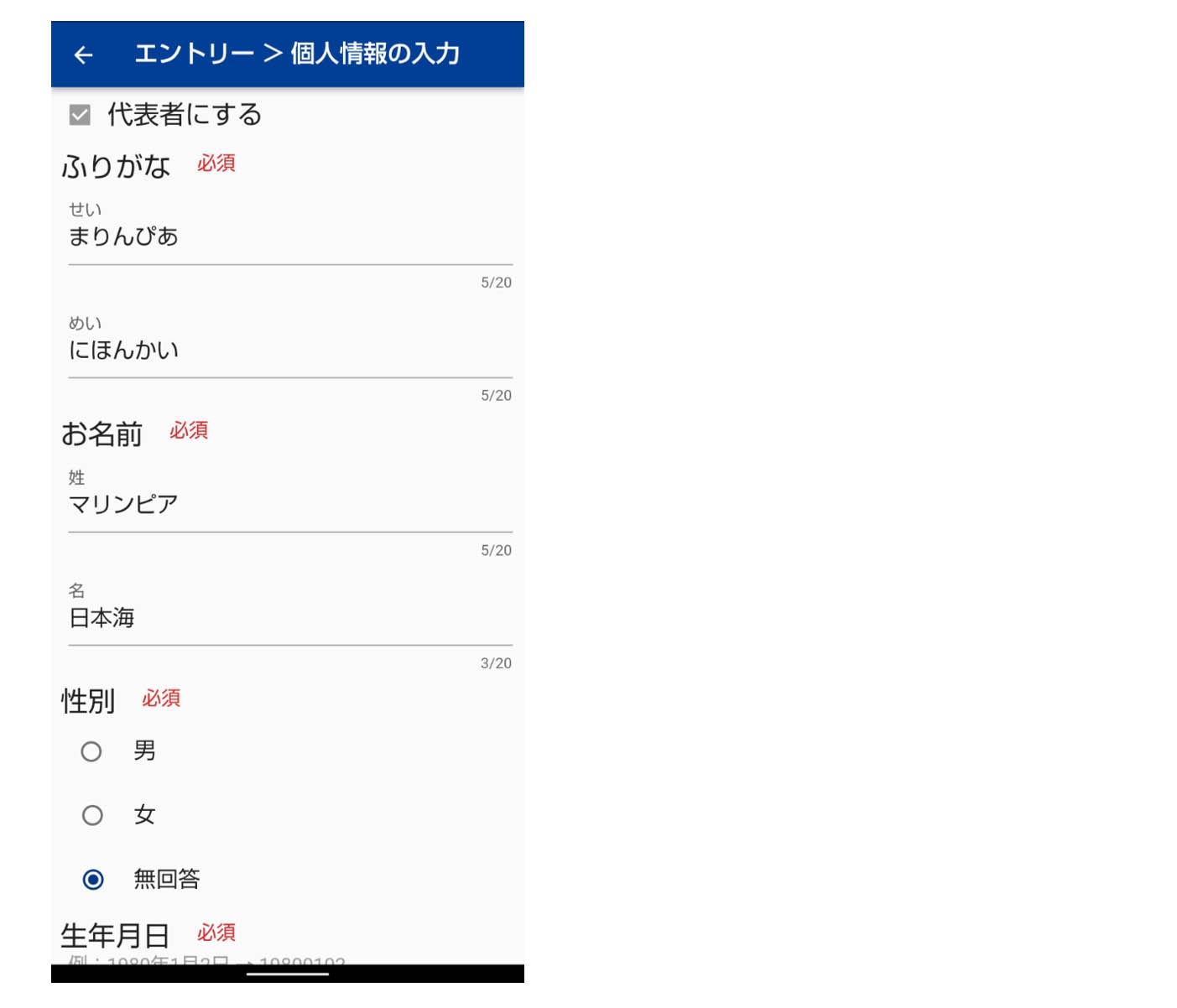 ※エントリー内容をアプリ内で削除された方は最初から入力が必要です。