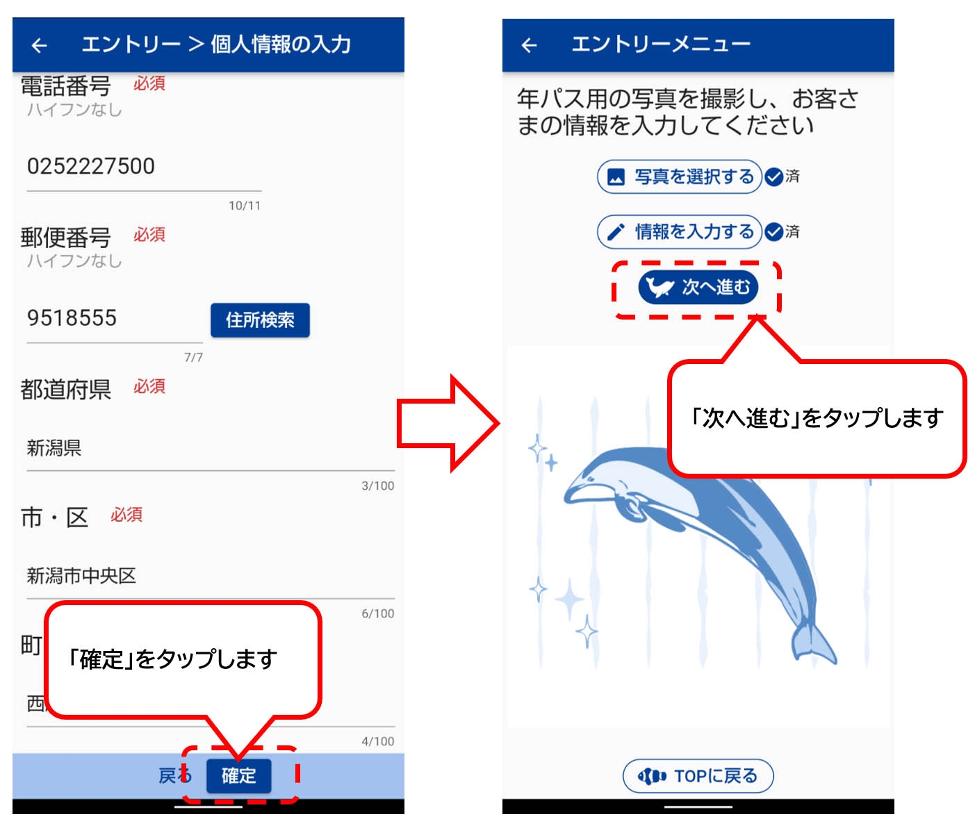 全ての情報を入力したら、「確定」ボタンをタップしてエントリーメニューに戻ります。
