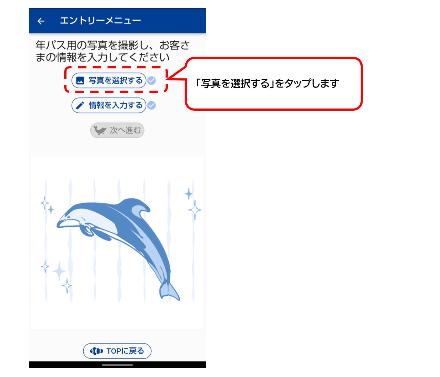 ・デジタル年パスの場合は「見せるから選択」をタップして、画像を選択してください。