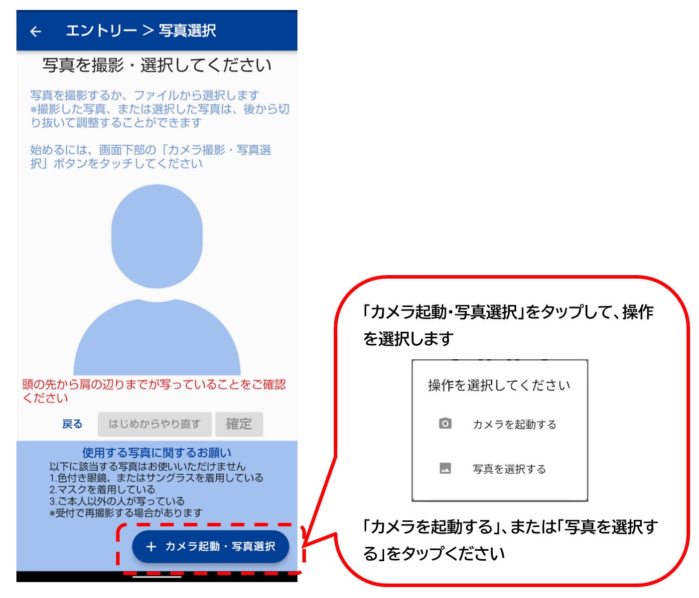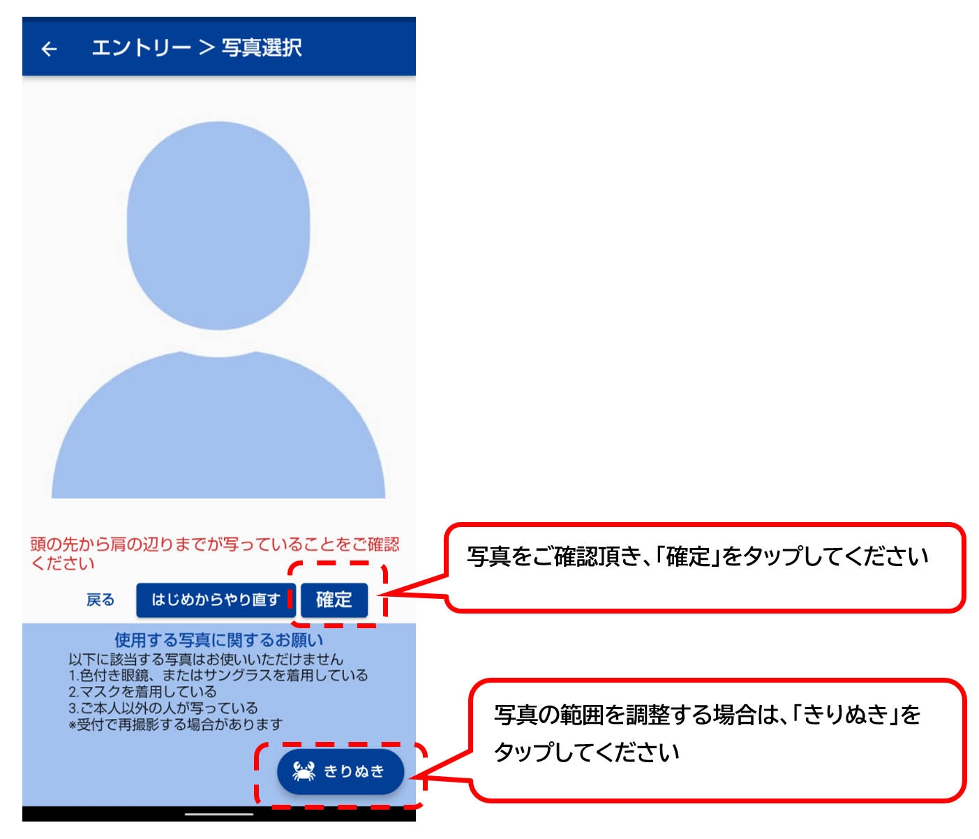 ・写真の有効期限は3ヶ月です。有効期限が切れた場合は、写真を再撮影してから再度エントリーをしなおしてください。