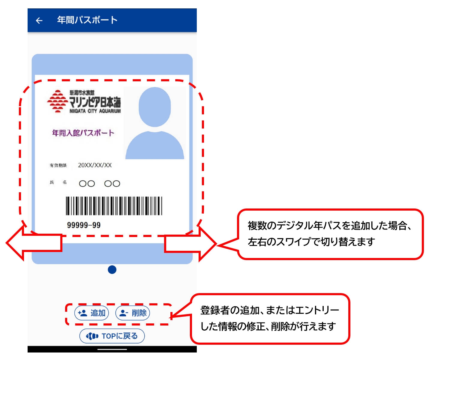 ・デジタル年パスを更新した場合、以前のデジタル年パスは「削除」ボタンで削除してください。