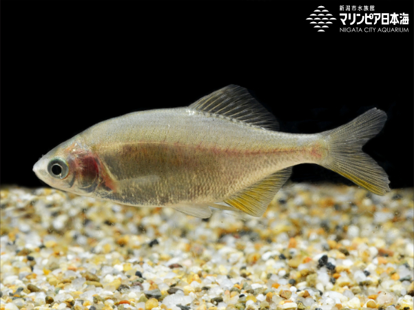 脊索動物門 硬骨魚綱 コイ目 コイ科 英名:Metallic Bitterling 種の保存法:特定第一種国内希少野生動植物種 環境省:絶滅危惧ⅠA類 新潟県:絶滅 新潟市:絶滅 体長6cm。主に神奈川県、新潟県以北の本州に分布しますが、各地で生息数は激減しており、新潟県内では1930年代以降の記録がなく、在来個体群は絶滅したと考えられています。平野部の湖沼や池、周辺の水路に生息し、9~11月にカラスガイやヌマガイなどのイシガイ科二枚貝のエラ内に産卵する繁殖様式を持っています。2025年に絶滅のおそれのある野生動植物の種の保存に関する法律(種の保存法)に基づき、特定第一種国内希少野生動植物種に指定され、無許可での捕獲や譲渡等が禁止されています。 |